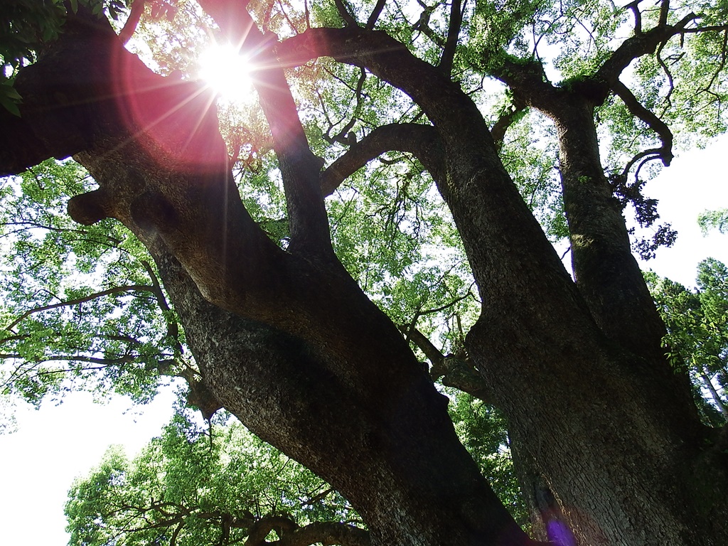 まず、越生町の「上谷の大楠」を訪れた。樹齢1000年、幹周り15m、高さ30mという、関東屈指の巨木だ。根元のあたりが特にすごい。長い間鎮座した者の気迫に圧倒される。ただ、人に見てもらおうと、南側斜面の樹木を切ってしまったせいか、乾燥していて、神秘さにかけるのが残念であった。トトロにでてくる「くすの木」より巨大だ。